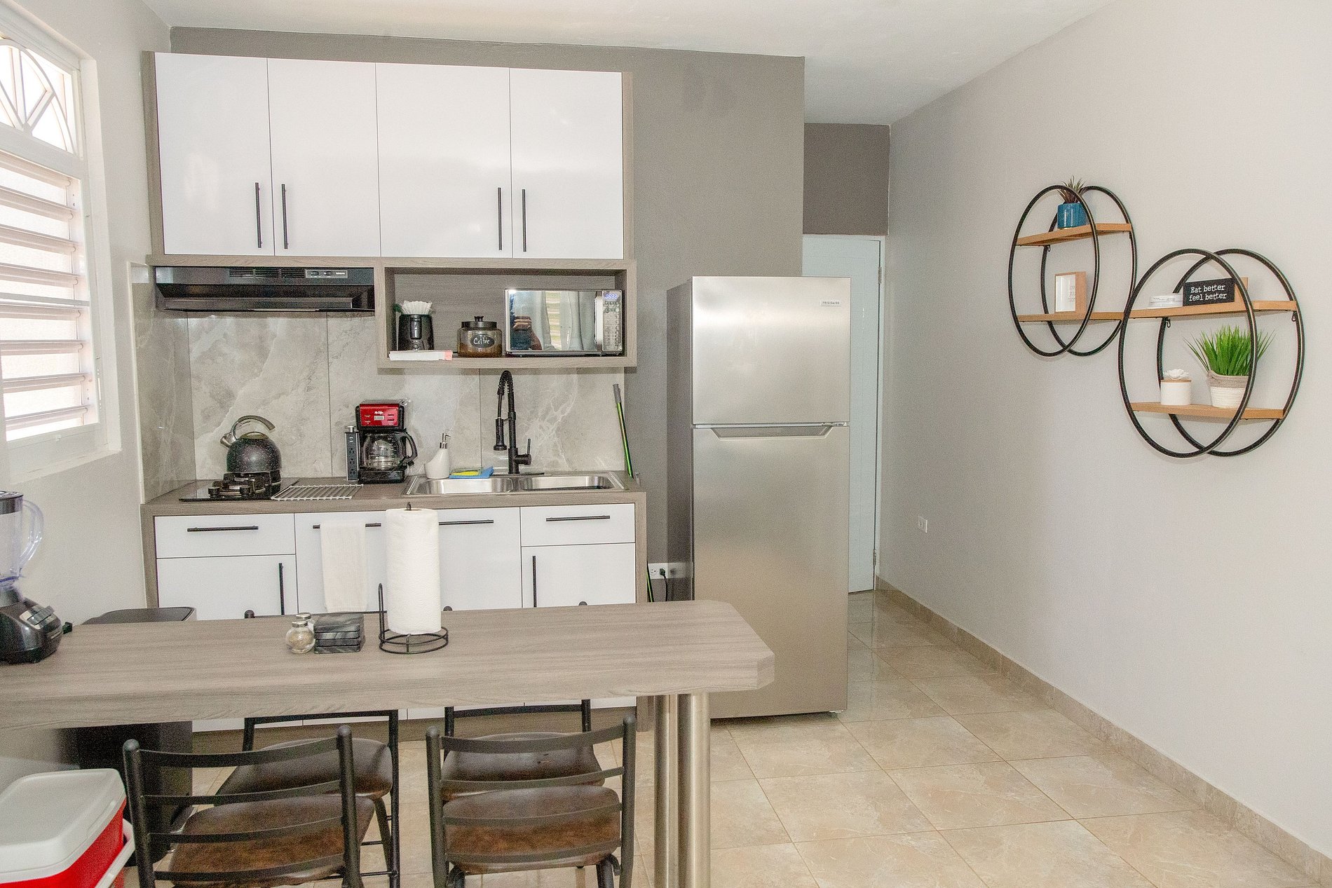 ** El Alojamiento: ** Descubre la perfecta fusión de confort y estilo en nuestro espacioso apartamento en Cabo Rojo, Puerto Rico, diseñado para alojar cómodamente hasta 4 huéspedes. Este refugio cuenta con un dormitorio elegantemente amueblado con una cama Queen y dos camas individuales, asegurando un descanso reparador con sábanas suaves y almohadas de primera calidad. La amplia sala de estar, dotada de un sofá espacioso, invita a momentos de relax y convivencia, complementados por la privacidad de un baño bien equipado.